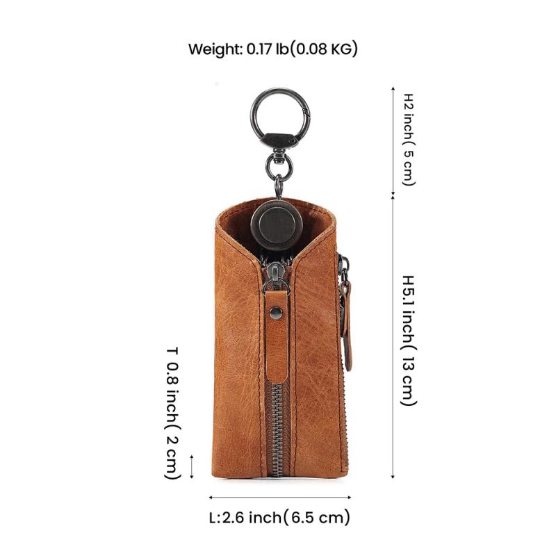 Keep your keys organized and secure with this top-quality, vintage-style key wallet. Made of 100% leather, this key holder features a zipper closure for added protection.