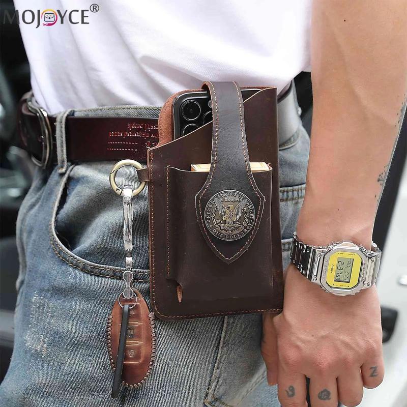 Leather Male Fanny Packs Vintage Waist Pack Cellphone Wallet