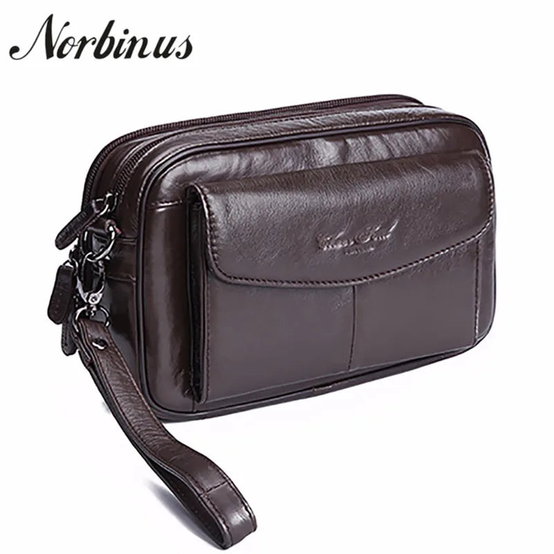 Leather Men Business Clutch Bag Cowhide Zipper Wallet Money Phone Case