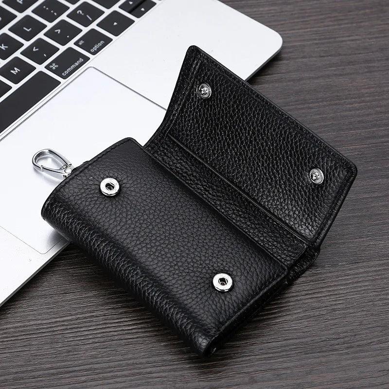 Leather Men Key Bag Wallet Keychain Three Fold Bag Key Holder Organizer