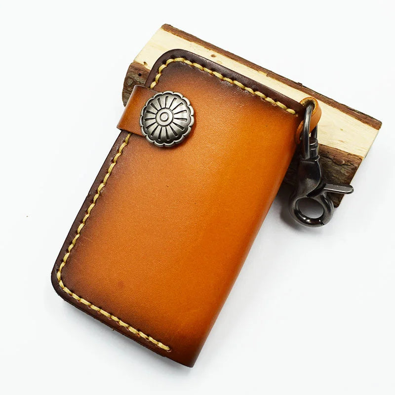 Keep your keys organized and secure with this leather key wallet. It features a car key ring case holder and chain for easy access.
