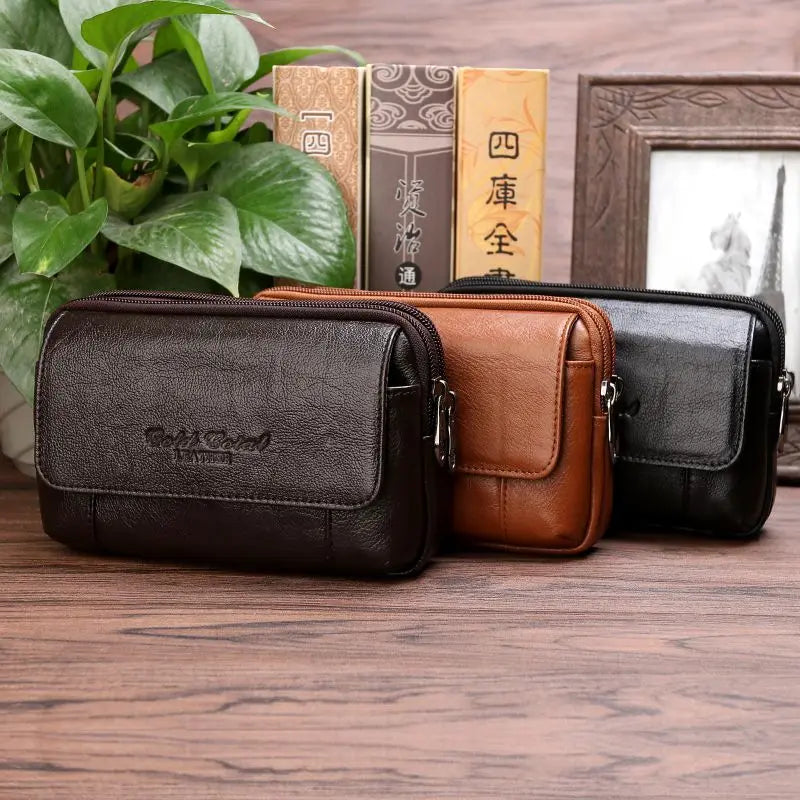 Leather Men Small Hip Waist Bags Male Fanny Pack Phone Pouch Bum Belt Bag