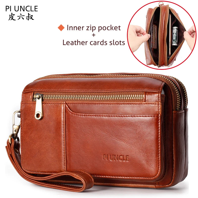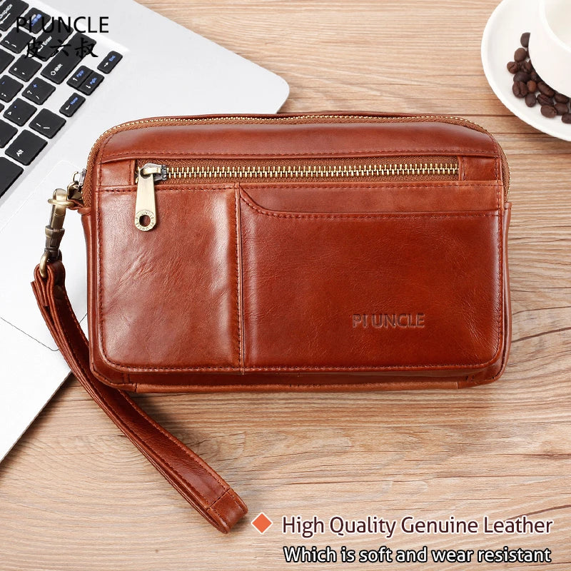This vintage clutch wallet is made from high-quality oil wax cowhide leather, perfect for holding cards, cash, a cell phone, and more.