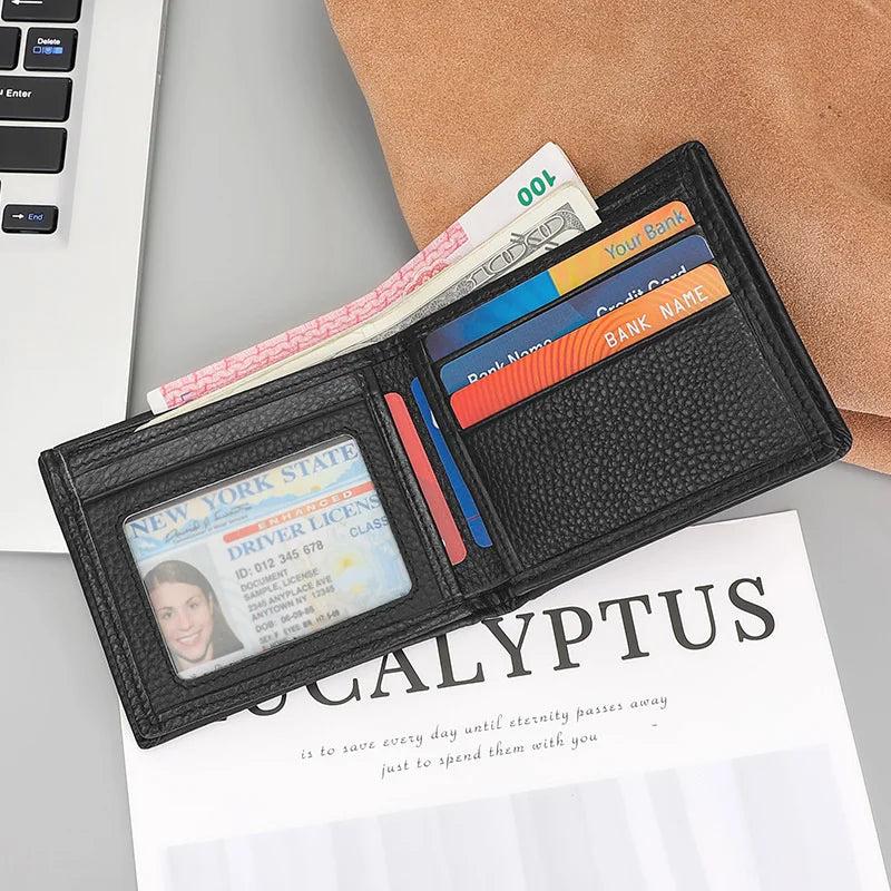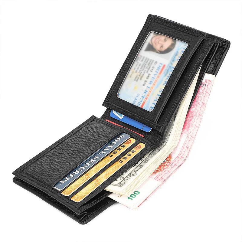 Leather Men's Wallet with Dollar Clip Short Business Wallet