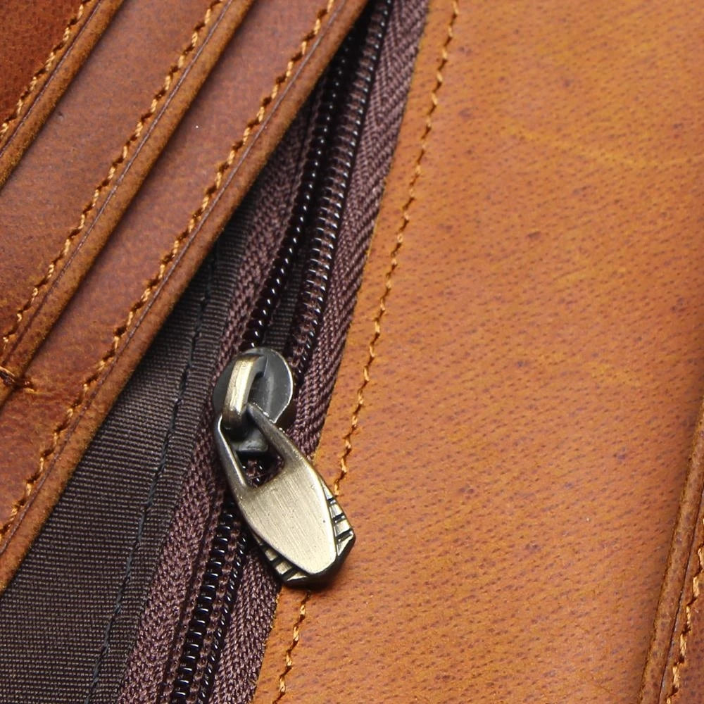 This wallet is made of high-quality first layer cow leather with a vintage crazy horse texture. It features a bifold design with a zipper closure and multiple card slots. The retro style adds a touch of sophistication to your everyday look.