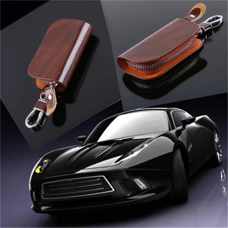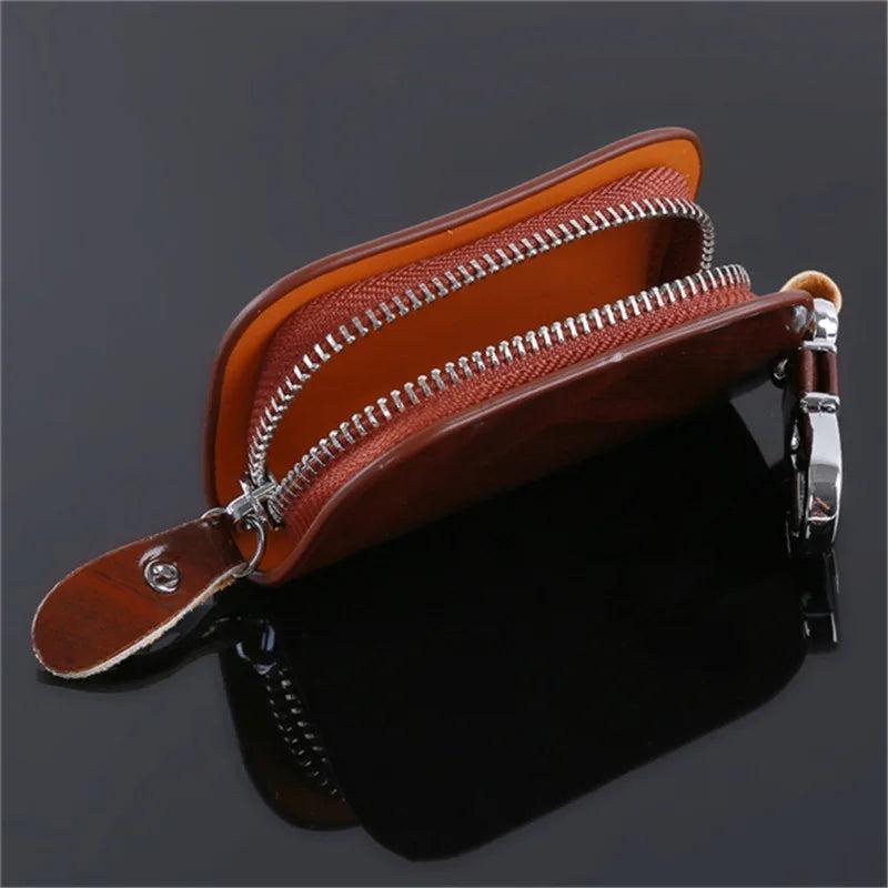 Keep your keys organized in this stylish and compact leather key holder wallet. Features a secure zipper closure and multiple key loops.