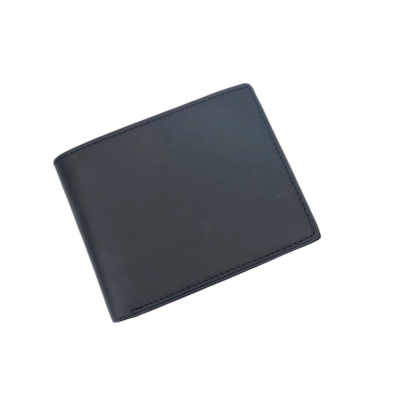 This men's wallet features high-quality leather material with a bifold design. It includes a matching keychain and comes in a gift box.