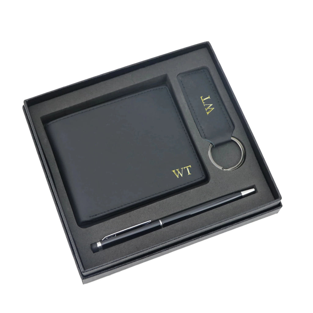 Letters Leather Men Wallet Bifold Money Wallet Gift set