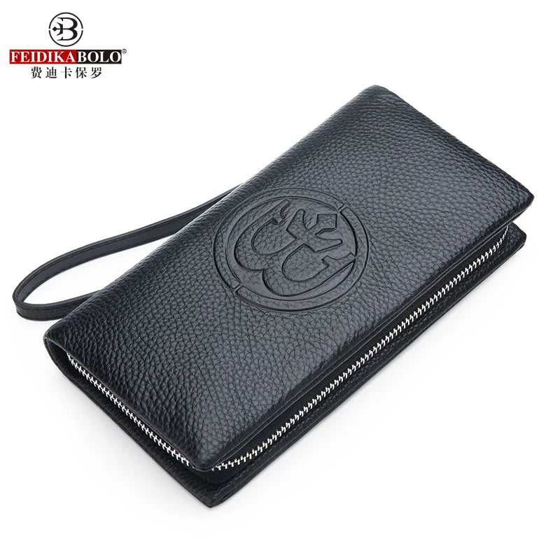 This long men's wallet is a versatile clutch bag that combines classic business style with casual functionality. It features a zipper closure, multiple card slots, a spacious interior for cash and receipts, and a dedicated compartment for your mobile phone. Perfect for everyday use or business meetings.