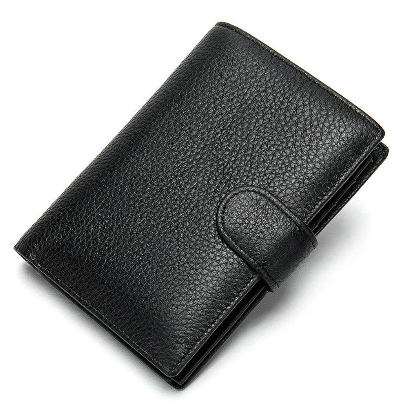 This slim wallet is made of high-quality cowskin leather, perfect for men. It has a short pocket design, making it lightweight and easy to carry.