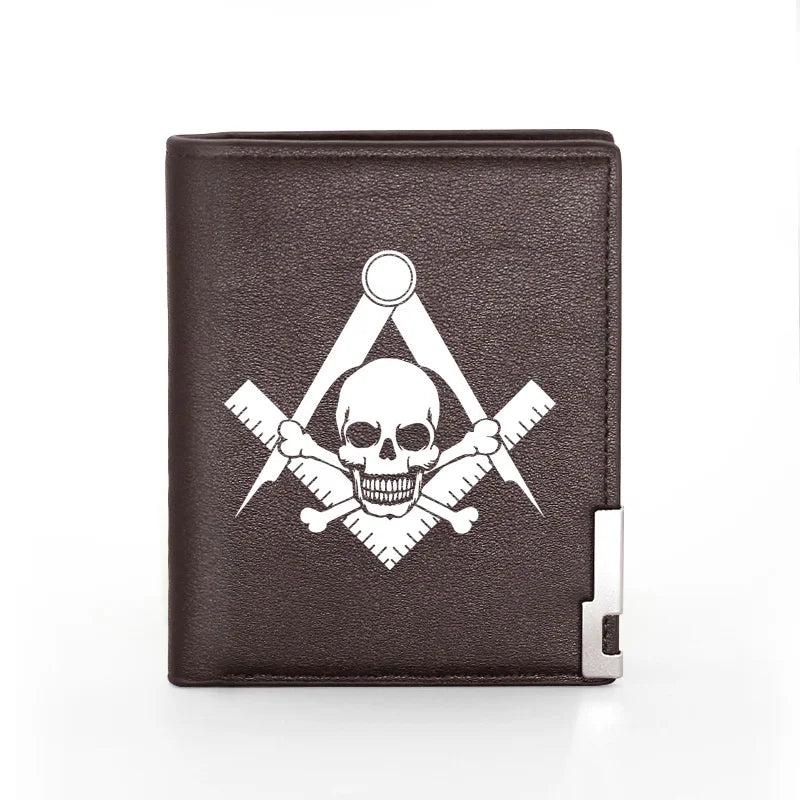 Masonic Skull Print Leather Men's Wallet Credit Card Holder
