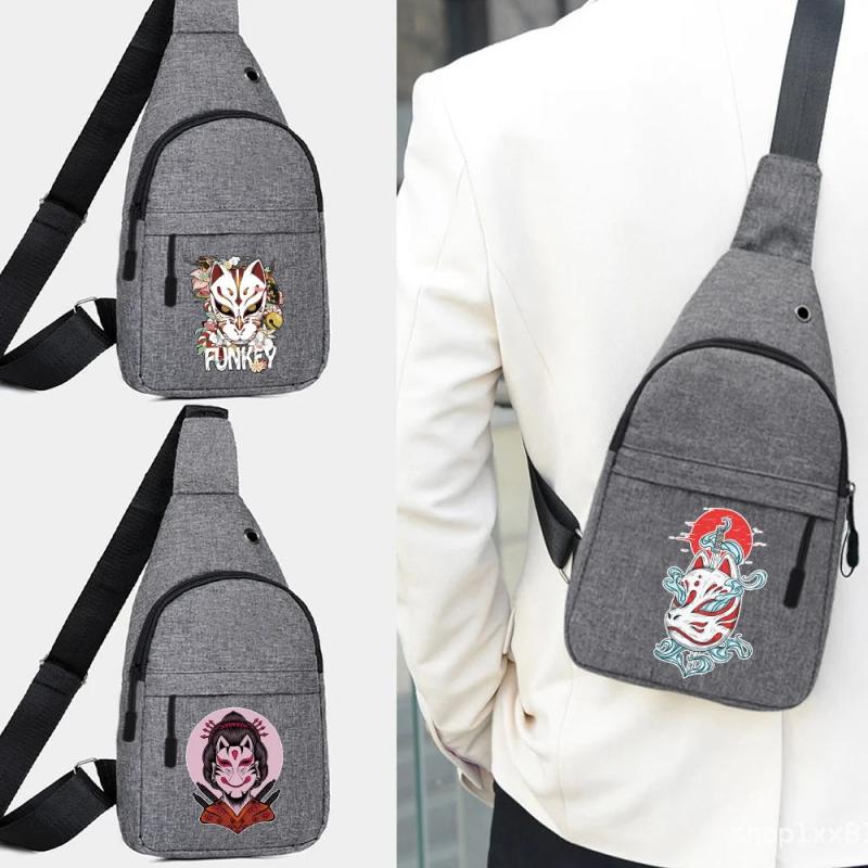 Stay stylish on the go with this versatile Men's Shoulder Messenger Chest pack featuring a trendy mask printing design. Perfect for streetwear fashion enthusiasts.