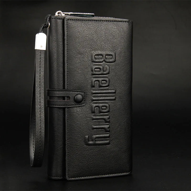 Stay organized and stylish with this men's long wallet and purse made from high-quality leather. Perfect for business use, this clutch can also hold your mobile phone securely.