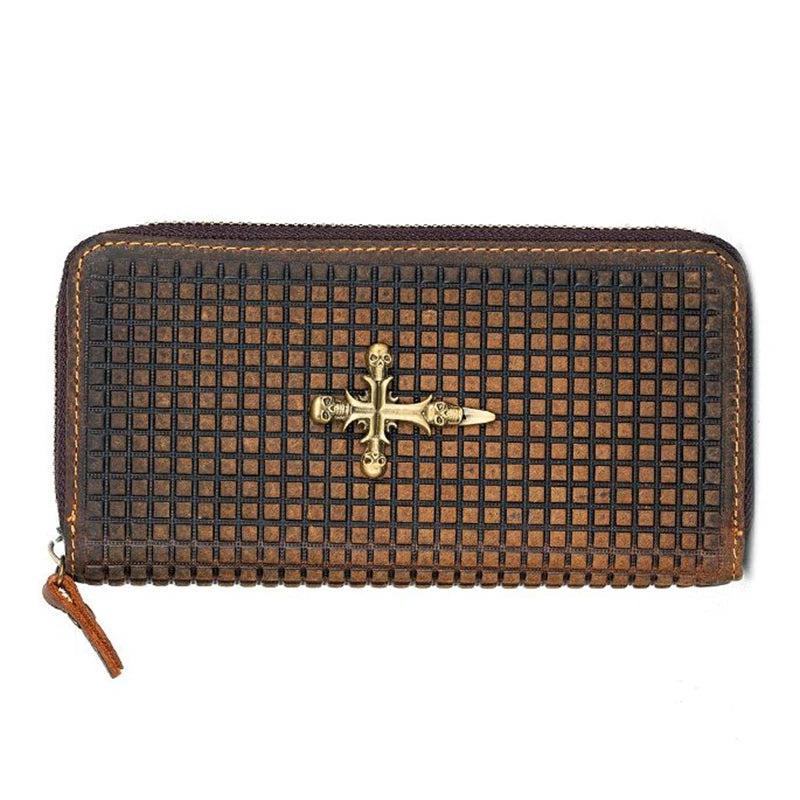 Men Leather Wallets Metal Skull Cross Pattern Purses Vintage Cowhide Money Bag