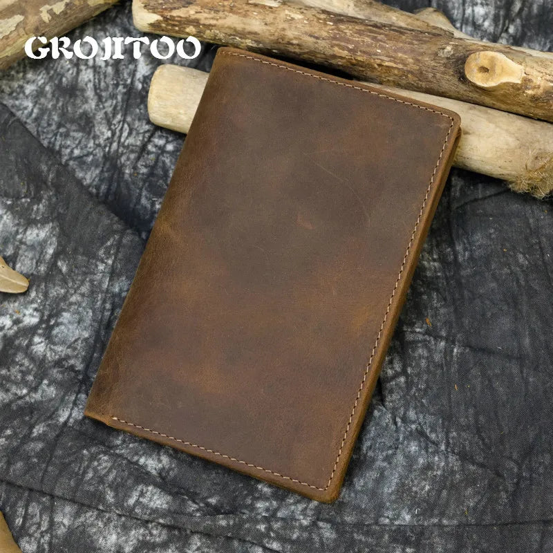 Men Passport Bag Crazy Horse Leather Wallet Large Capacity Purse