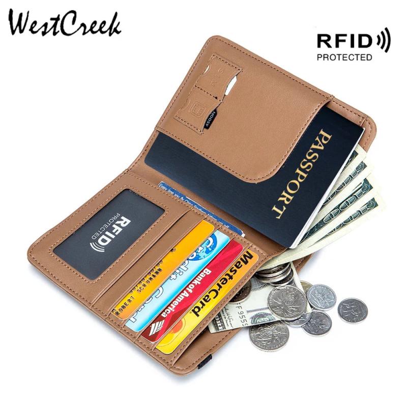 Men Passport Holder Leather RFID Multi-function Male ID Bag Passport Holder Wall