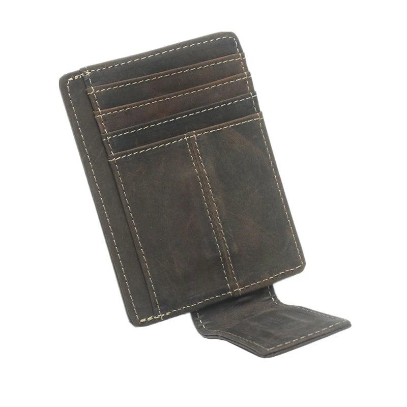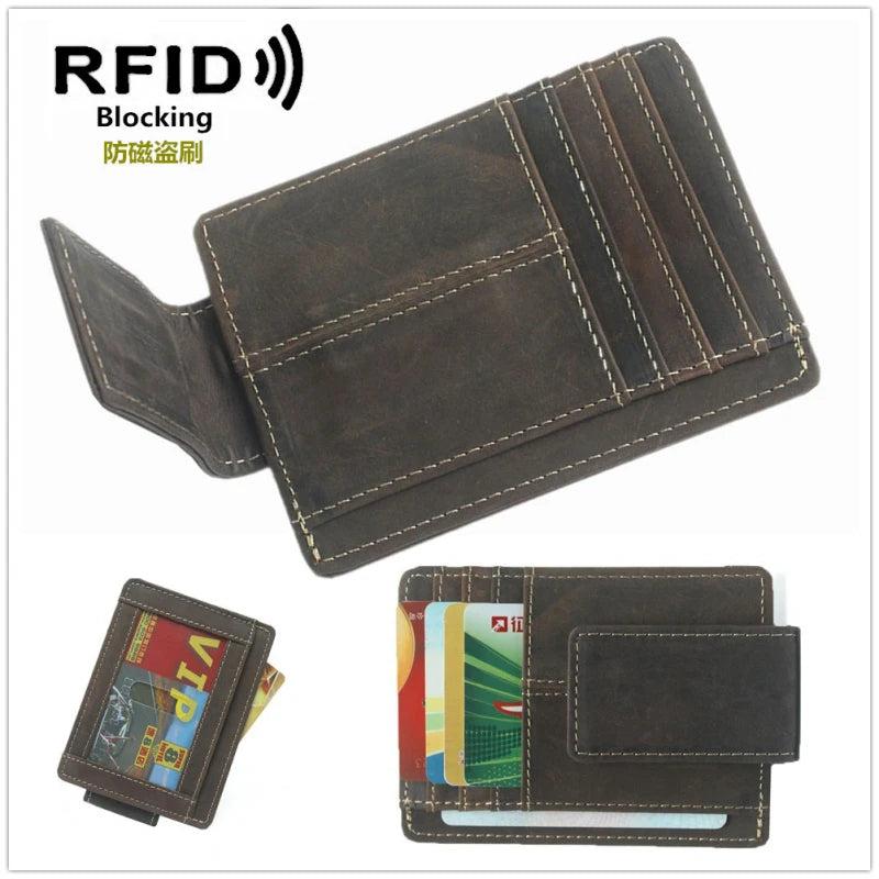 Men Retro Leather Money Clip RFID Slim Credit Card Holder