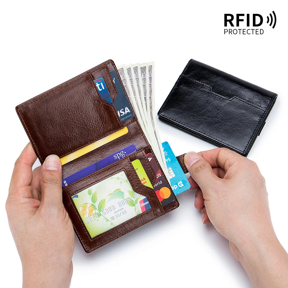 Stay stylish and organized with this fashionable men's short wallet. Made of solid cow leather, it features multiple card slots, a snap coin purse, and a vertical design. Perfect for the modern man on-the-go.