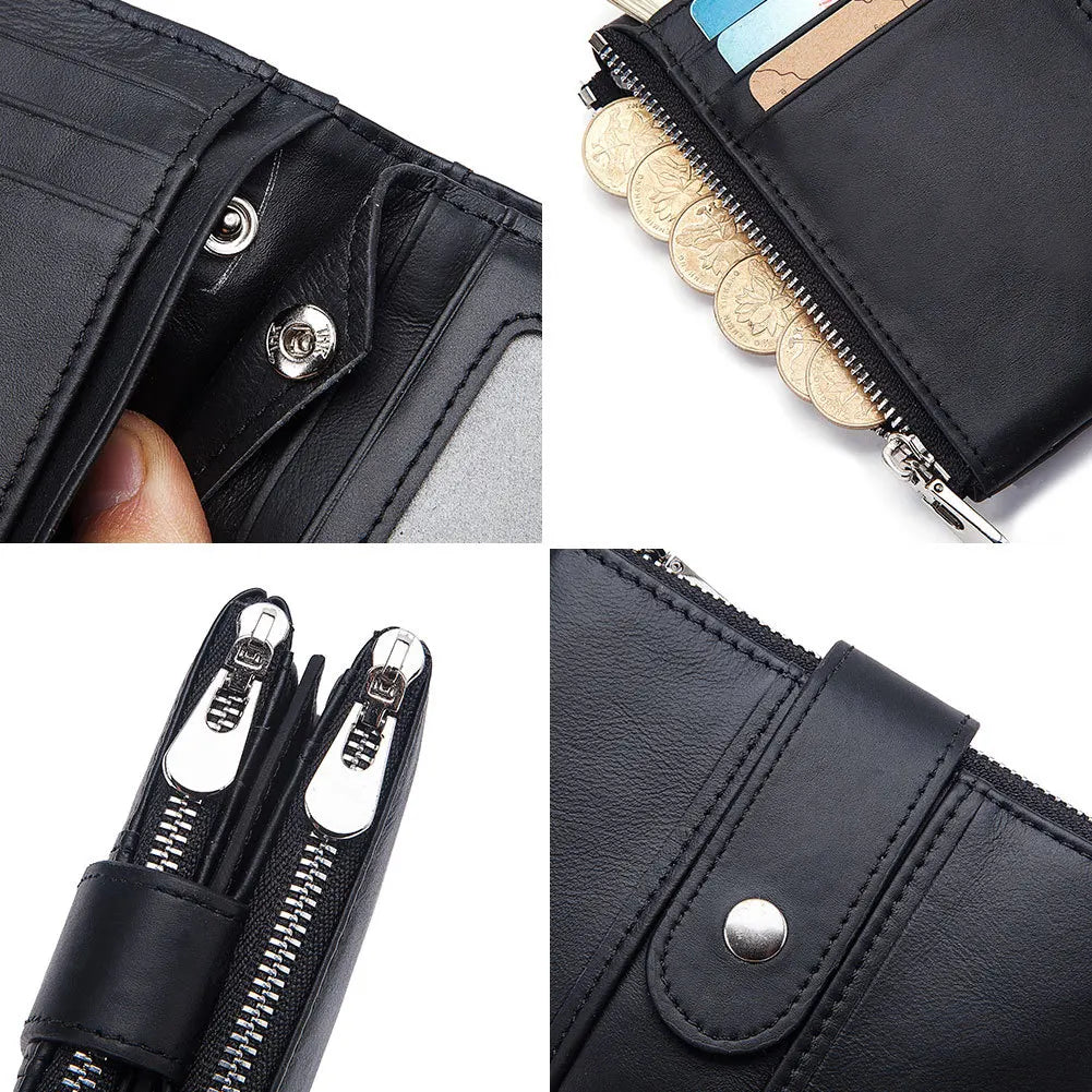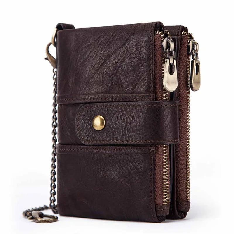 This small wallet is the perfect gift for men, with double zippers for added security. Made of high-quality leather, it is a versatile and stylish accessory for any man.
