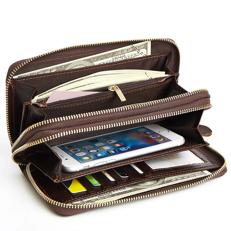 Stay organized with this stylish men's wallet made of high-quality leather. The double zipper design ensures secure storage for your cards, cash, and other essentials. Perfect for everyday use or business meetings.