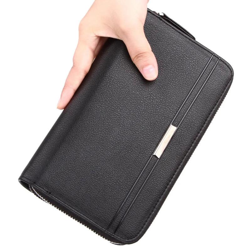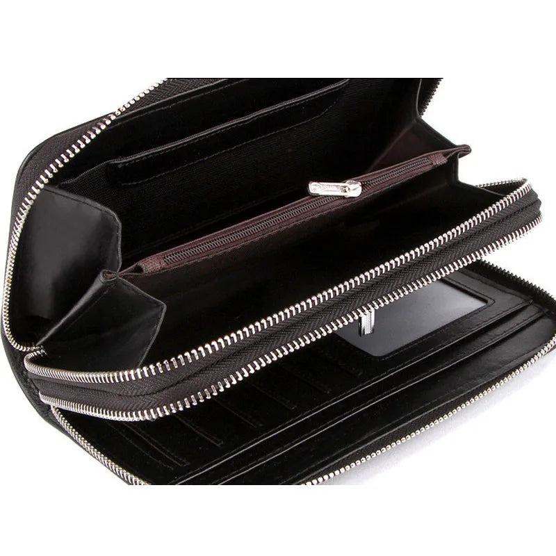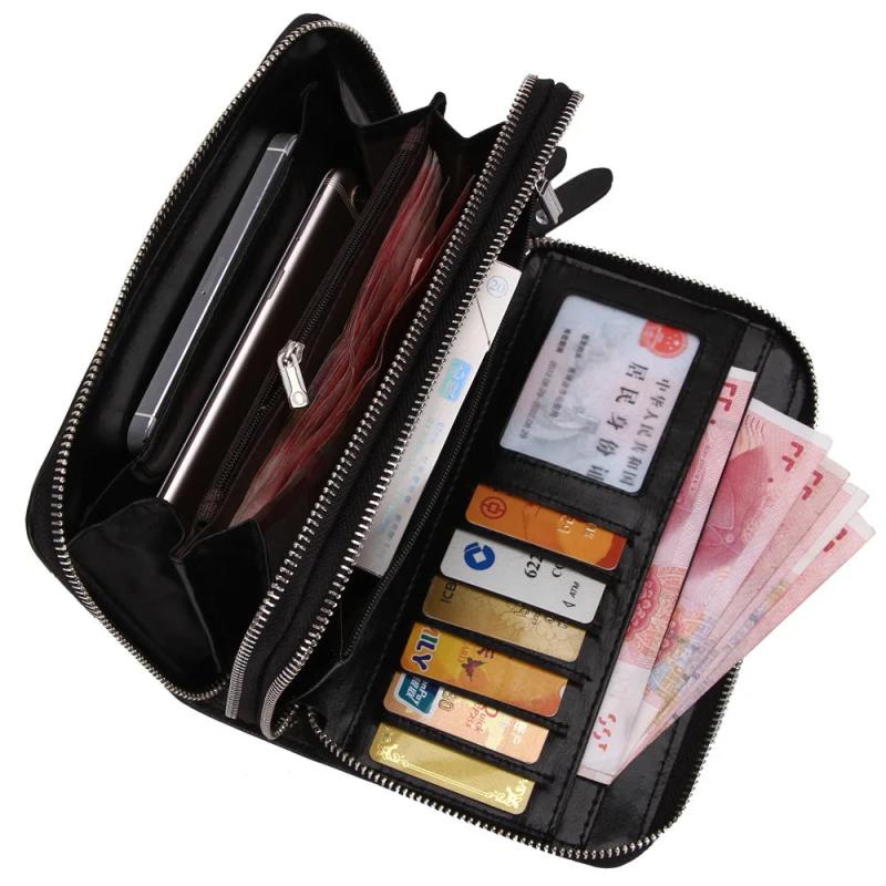 High capacity multifunction wallet designed for men to keep money and cards organized. Features a clutch design with a mobile phone bag for added convenience.