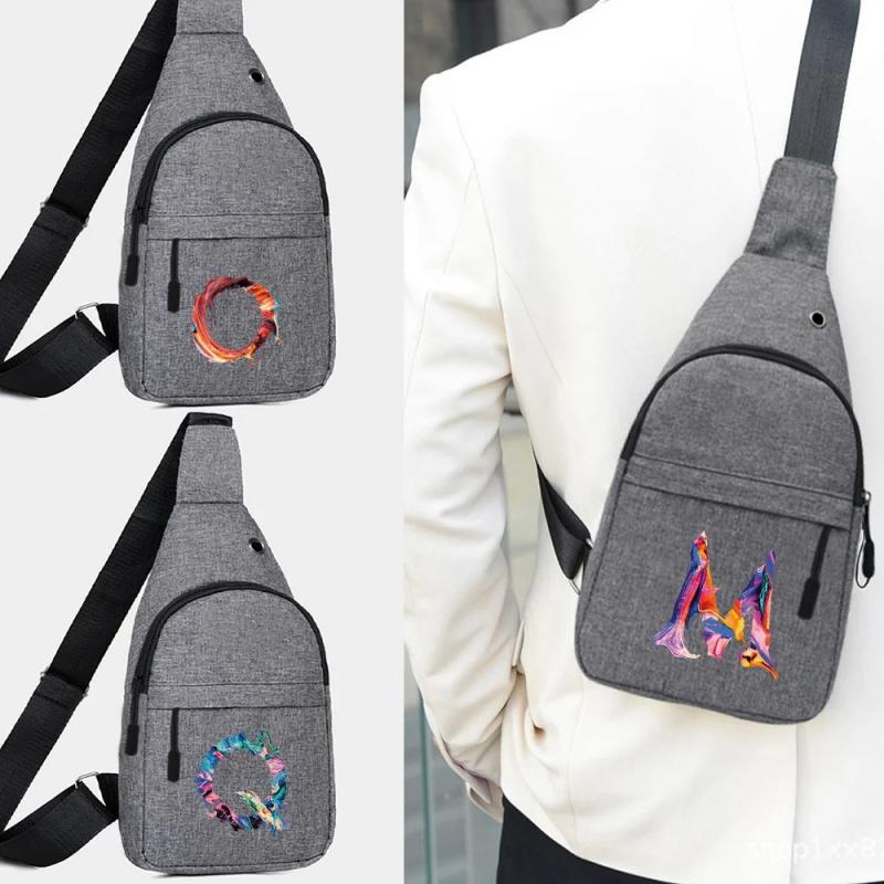 Men's 26 Letter Paint Chest Bag for Casual Walks