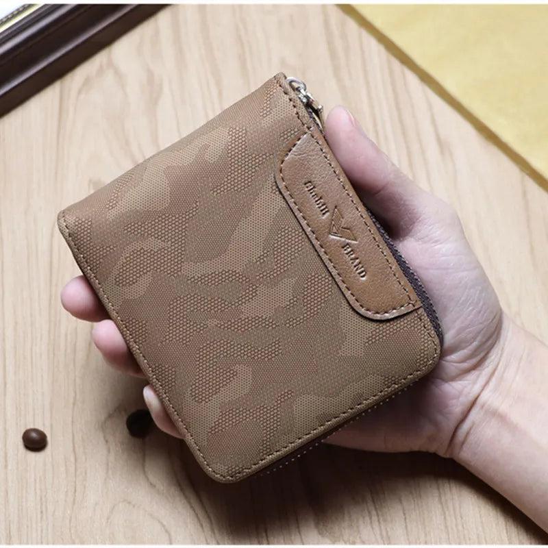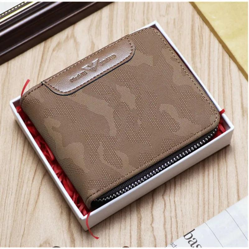 Stay organized with this short camouflage wallet featuring a zipper closure. Perfect for business use with its large capacity.