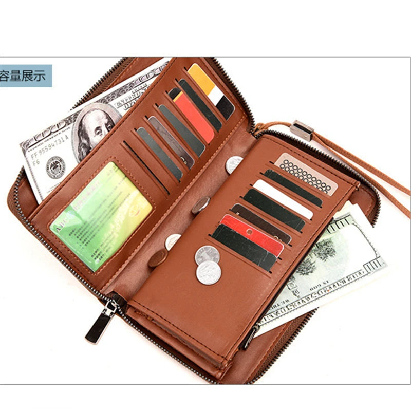 Stay organized with this large capacity men's clutch hand bag. Made with high-quality PU leather, this casual wallet features a hollow out design and is perfect for keeping your phone, money, and other essentials in one place.