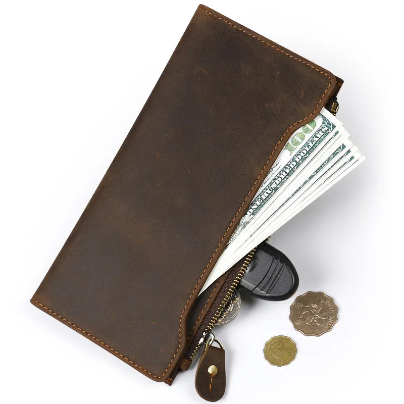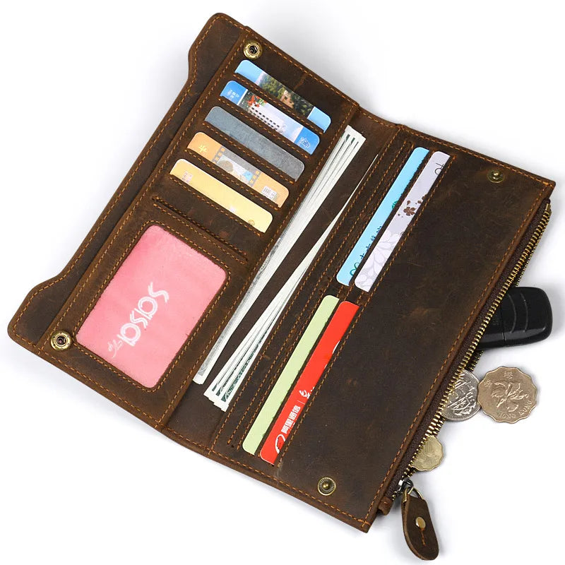 This men's wallet is made of durable crazy horse leather with a high retro style design. It features multiple compartments and slots for organizing your cards and cash.