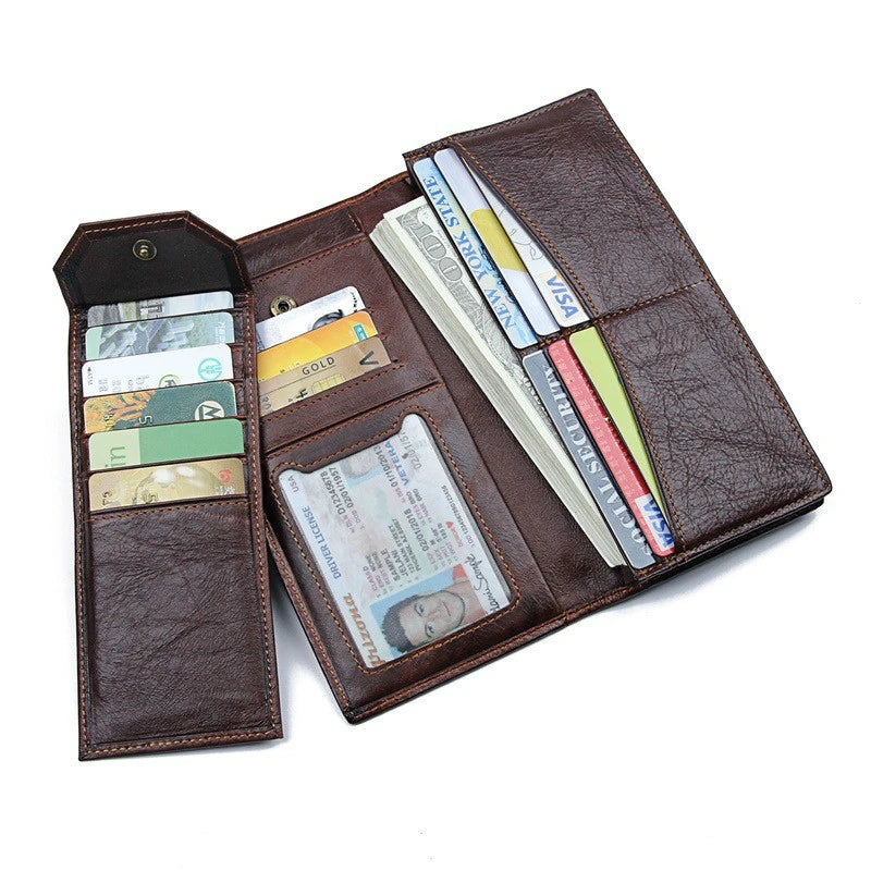 Men's Cowhide Leather Clutch Wallet Multi-card Large Capacity