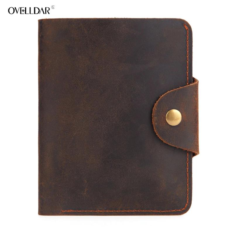 Men's Cowhide Oil Wax Leather Wallet Vintage Business Man Purse