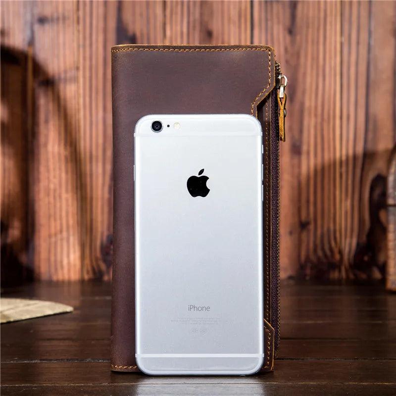 Men's Crazy Horse Leather Long Wallet Large Capacity Clutch Bag