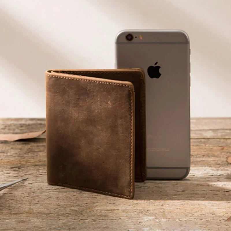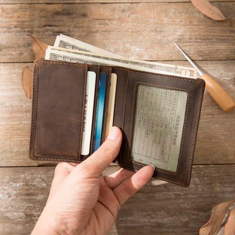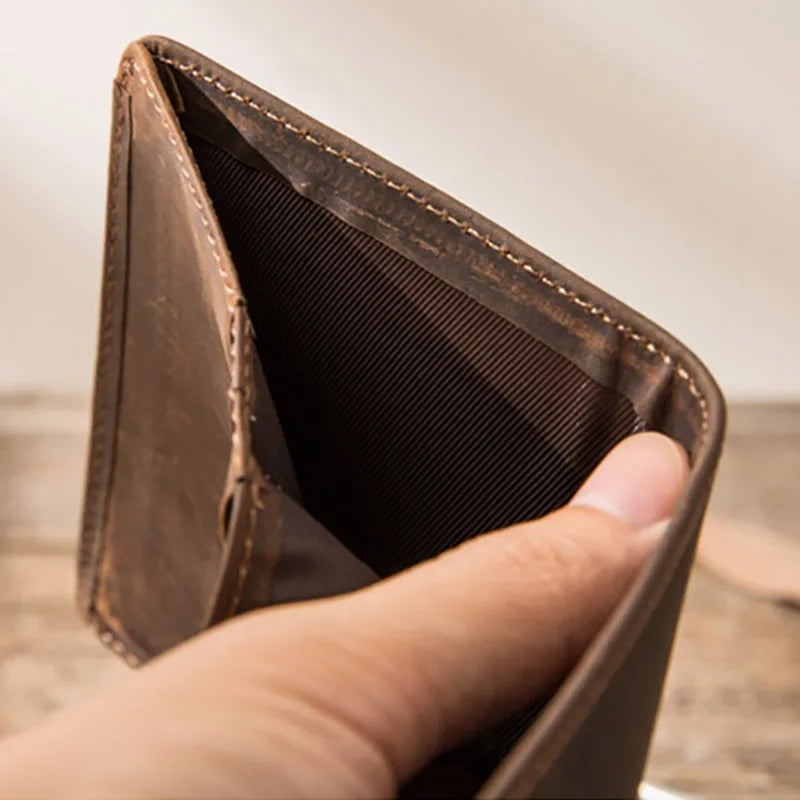 This retro first layer leather wallet is a stylish and durable accessory for men.