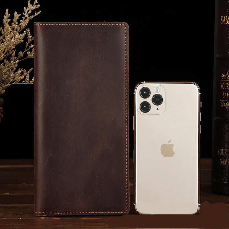 Men's Crazy Horse Leather Wallet Men's Bag Hand Bag Long Wallet