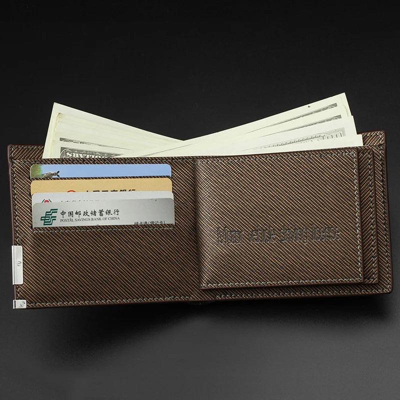 Get this stylish men's wallet with a driver's license pocket, short student's wallet, and three clips for your essentials.