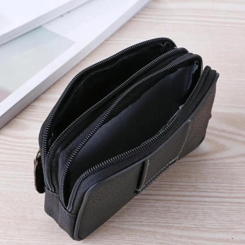 Men's Faux Leather Wallet Double Layer Phone Waist Bag