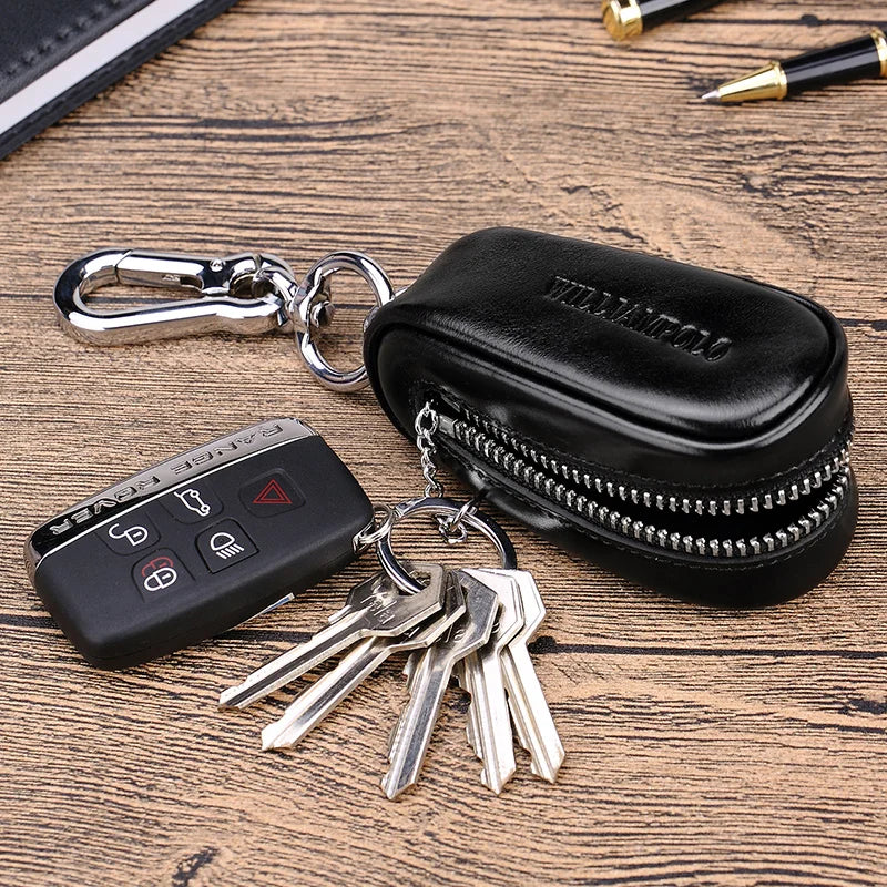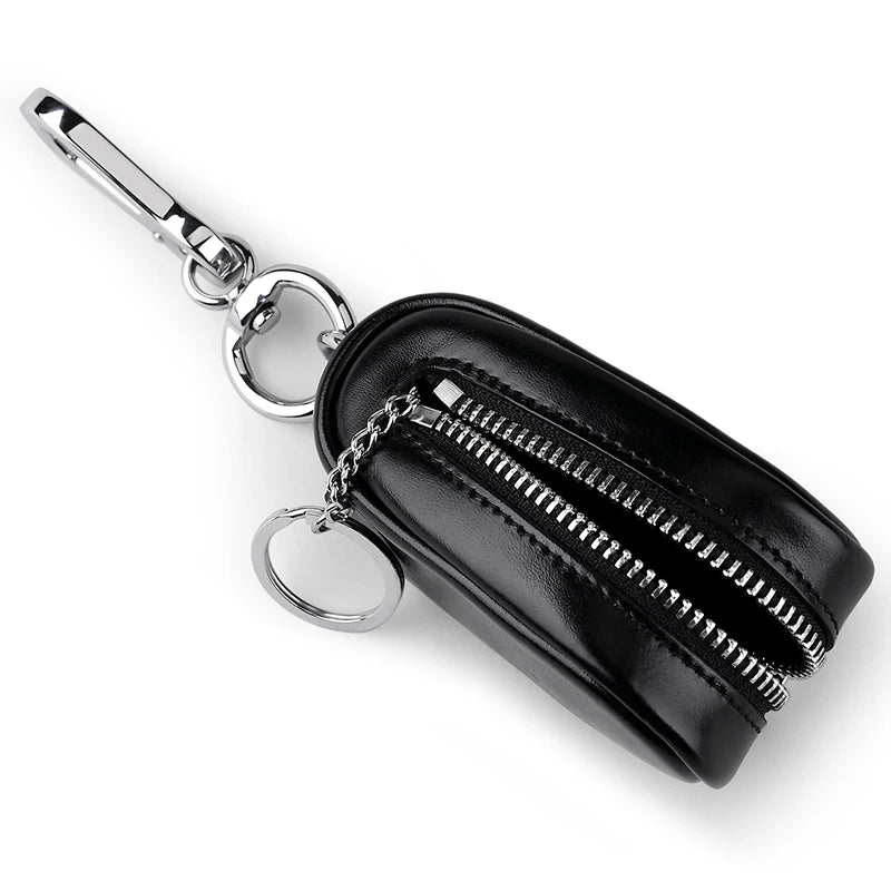 Men's Leather Car Key Wallet Zipper Key Case Organizer