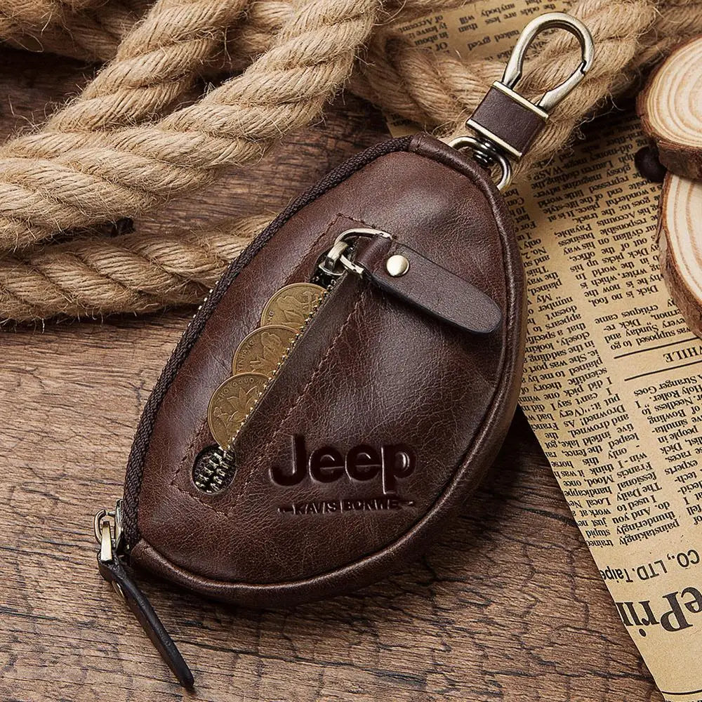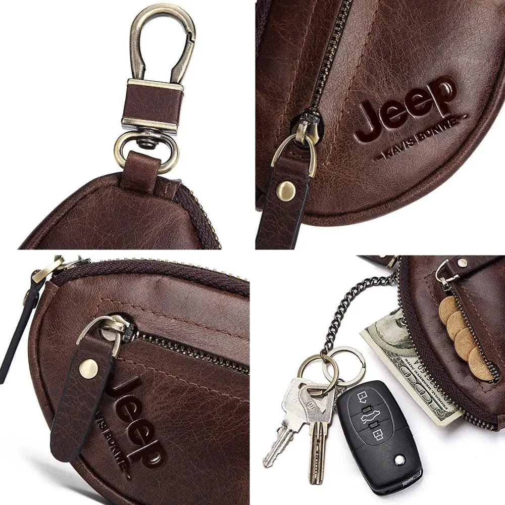 Keep your keys organized with this cowhide leather key holder that can also store small items. Perfect for men on the go.