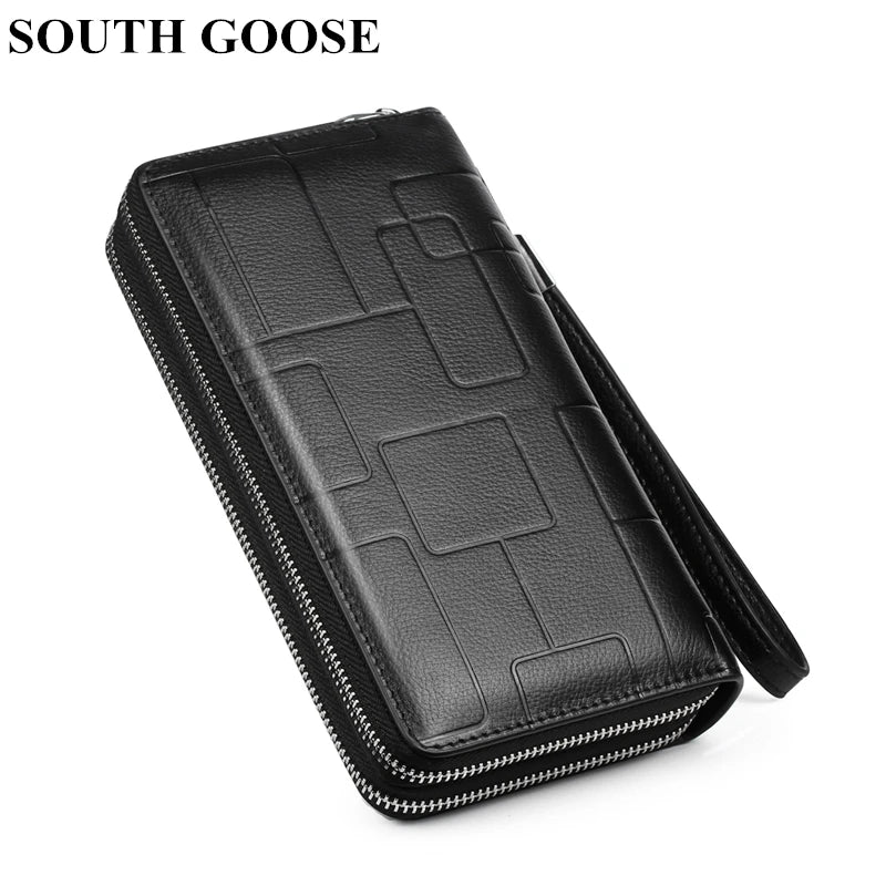 This men's leather clutch wallet is designed for multi-functionality, featuring double zippers and a long design. It is a convenient and handy accessory for storing your phone and other essentials.