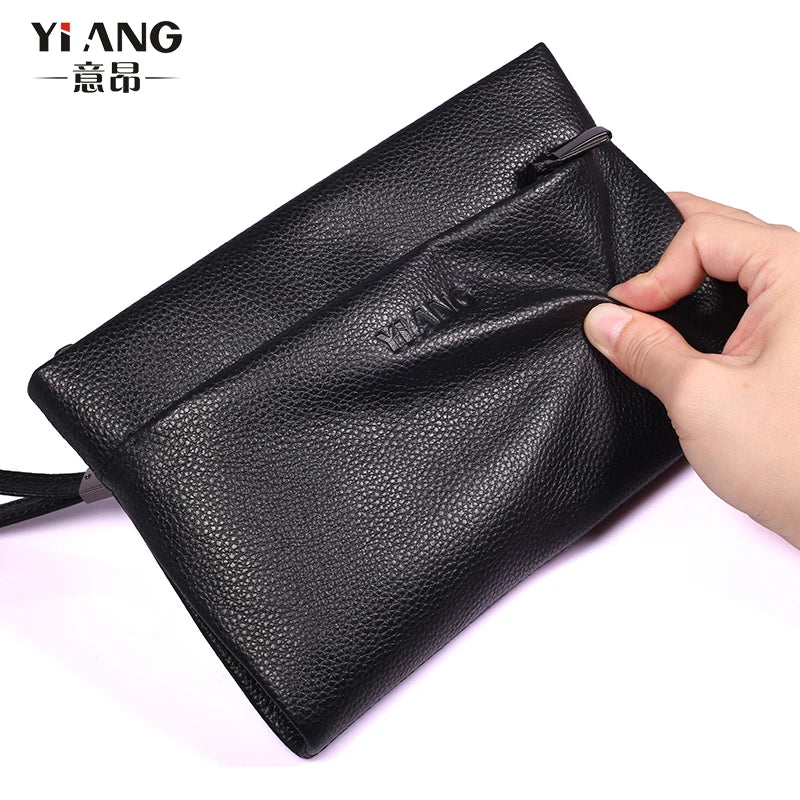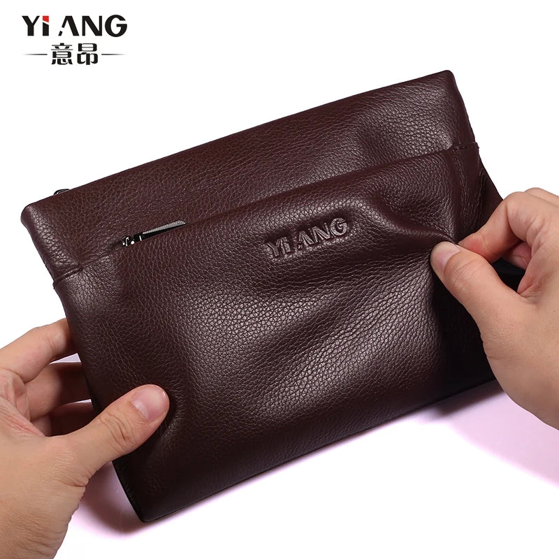 This men's clutch bag is made of real leather and features a long design. It is perfect for storing money and cards.