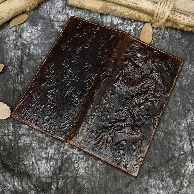 Men's Leather Dragon Wallet Bifold Long Wallet with Zipper Pocket