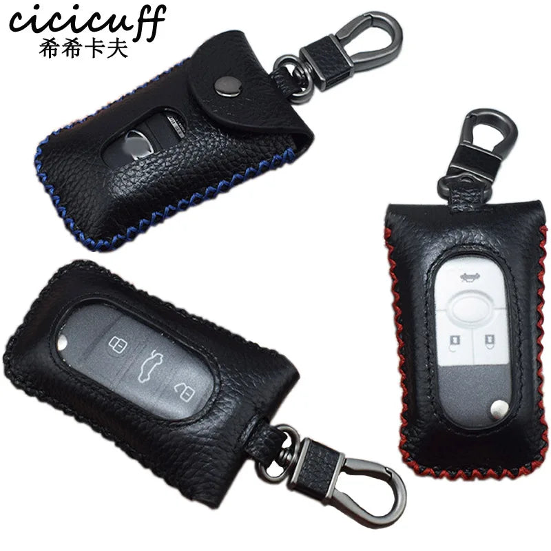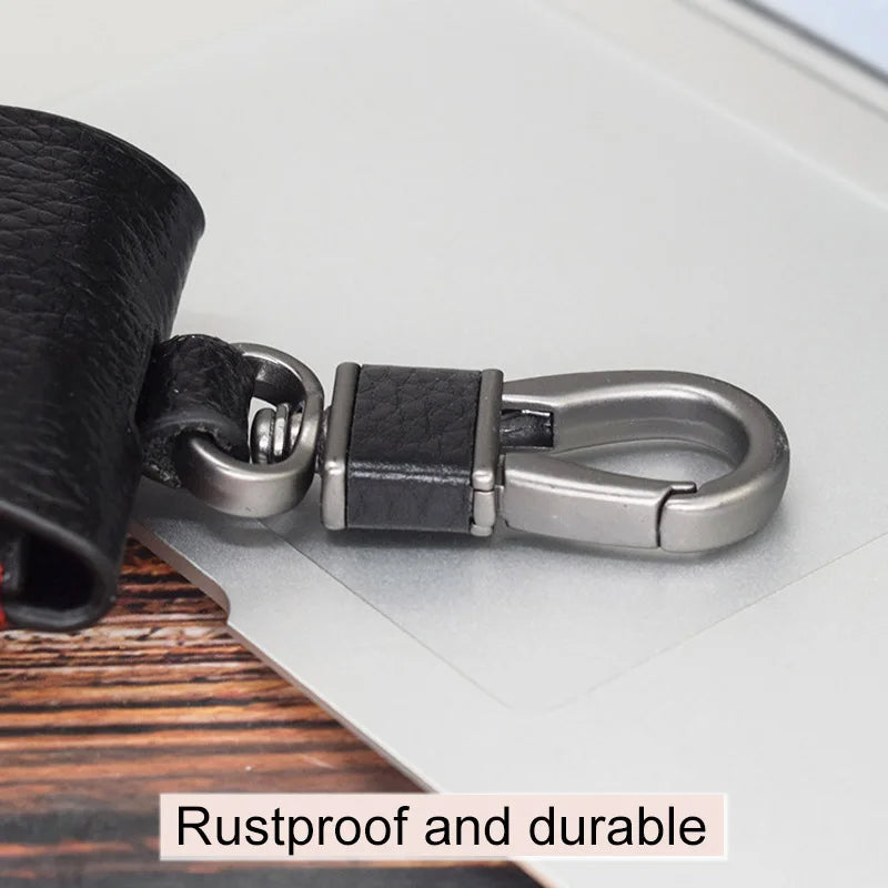 Keep your keys organized and secure with this stylish leather key case wallet. Features a zipper closure and keychain for easy access.