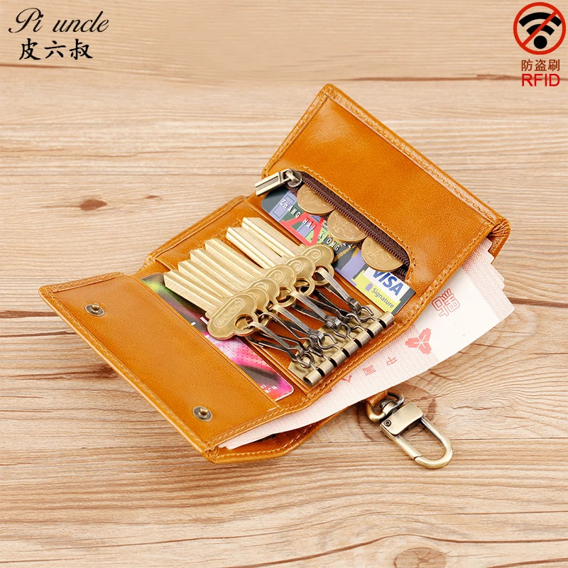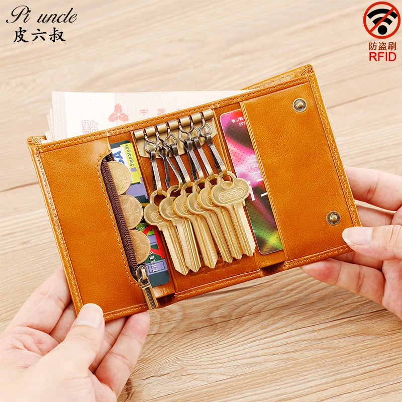 Men's Leather Key Case Zipper Wallet Car Key Holder