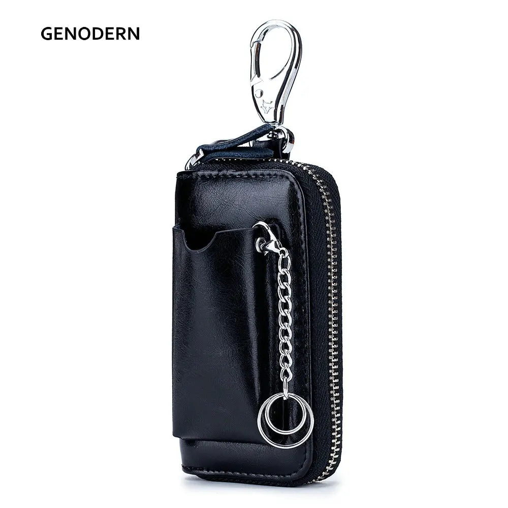 Men's Leather Key Holder Zipper Car Remote Control Package