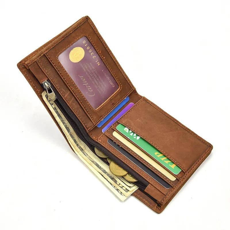 This slim leather wallet is a perfect gift for your boyfriend or father. Made with high-quality leather, it is durable and stylish, suitable for everyday use.