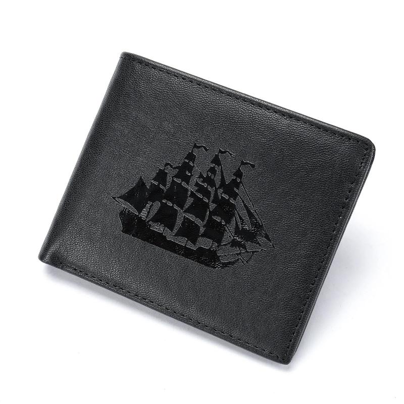This men's short wallet is crafted from high-quality leather and features a stylish boat pattern design. It makes a perfect gift for men and offers ample storage for cards and cash.