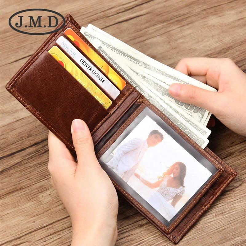 This men's leather wallet features a short clip design with a US dollar clip for convenience and easy access to cash.