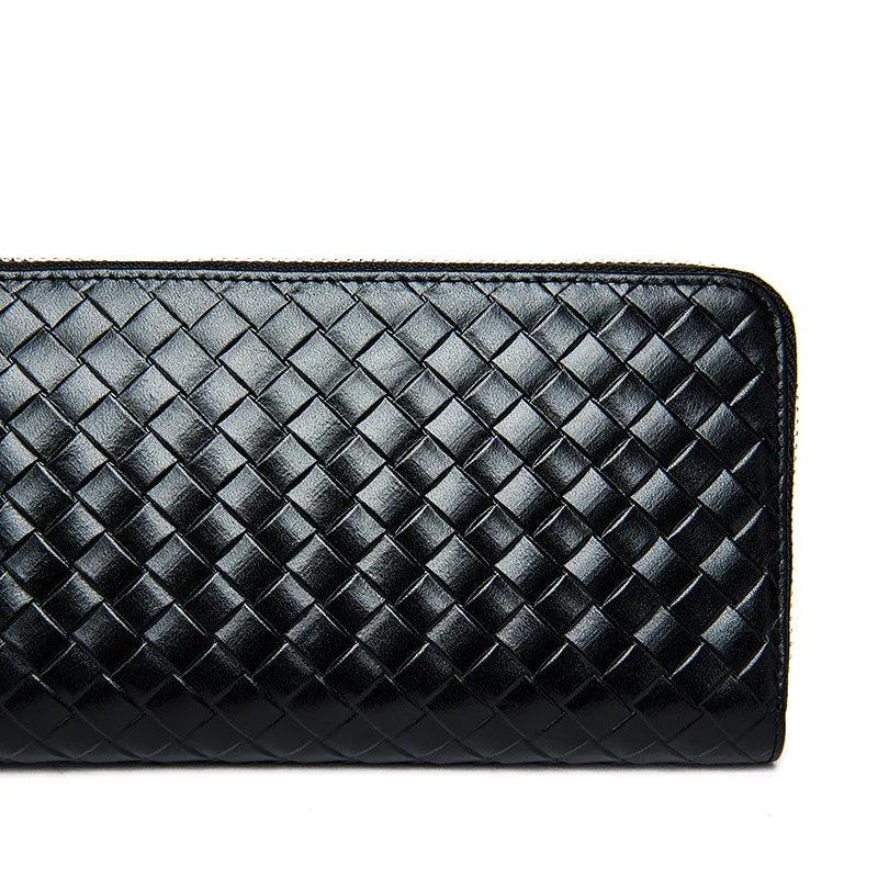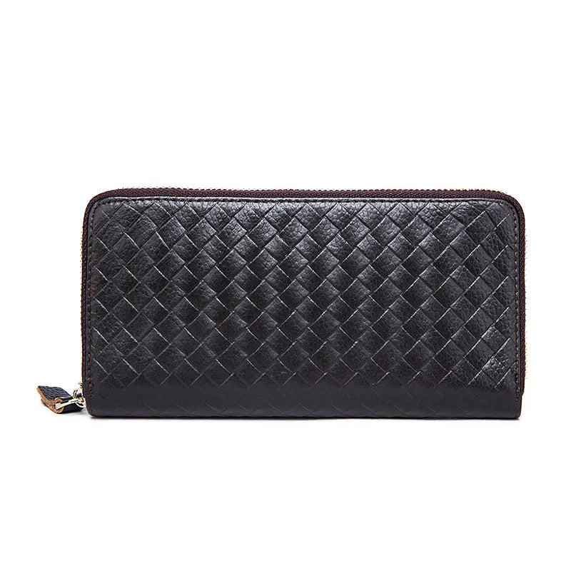 Men's Leather Wallet Weave Purse Long Clutch Hand Bag