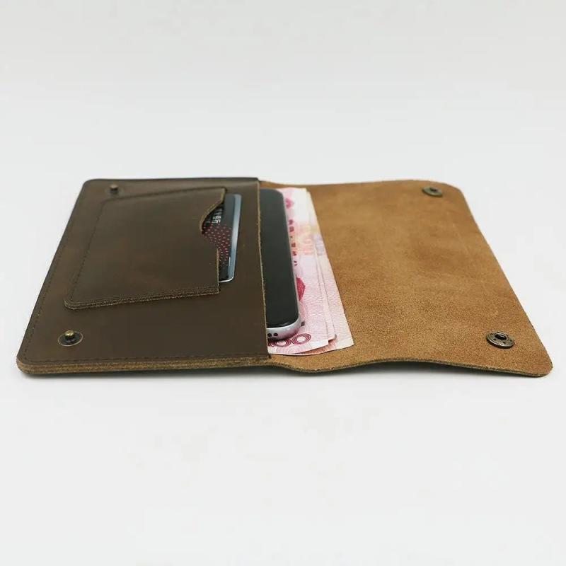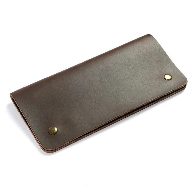 This long leather wallet for men is crafted from pure leather. It features a checkbook holder and offers personalized style.