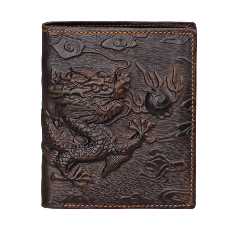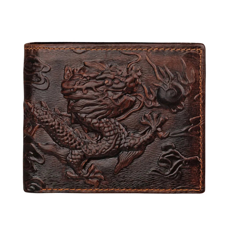 Men's Leather Wallet with Dragon Embossing RFID Protection